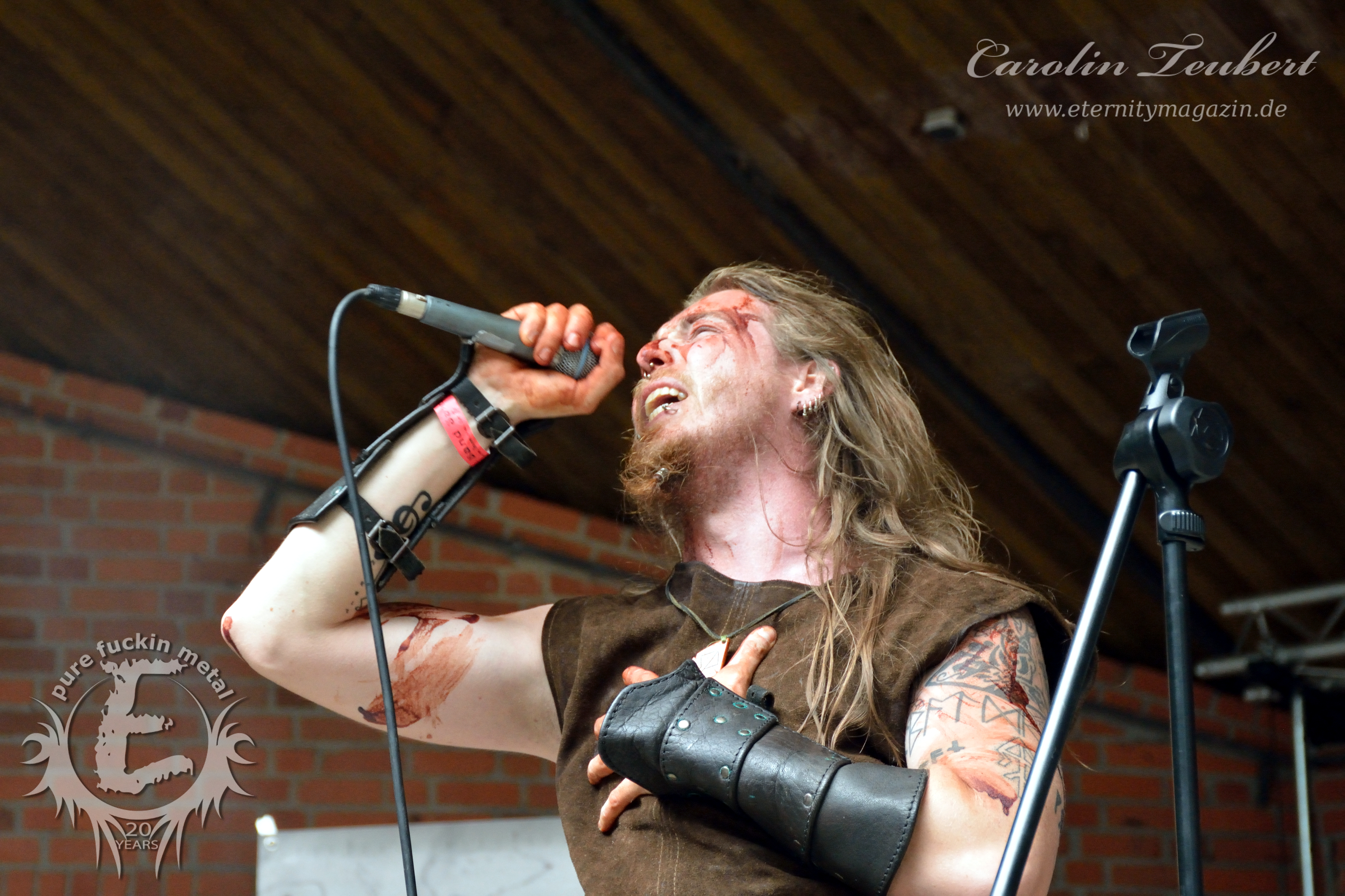 Fimbulvet werden dann vom Regen wieder geärgert, denn ein Wolkenbruch zieht über Barth. Unbeeinflusst spielen die Thüringer aber ein sauberes und abwechslungsreiches Set angefangen von „ Monument“ über „Der Ruf in goldene Hallen“ bis hin zu „Drakkarmannen“. Somit gibt es einen schönen Querschnitt aus der gesamten Diskographie, der vor allem stimmlich wieder sehr stark ist.