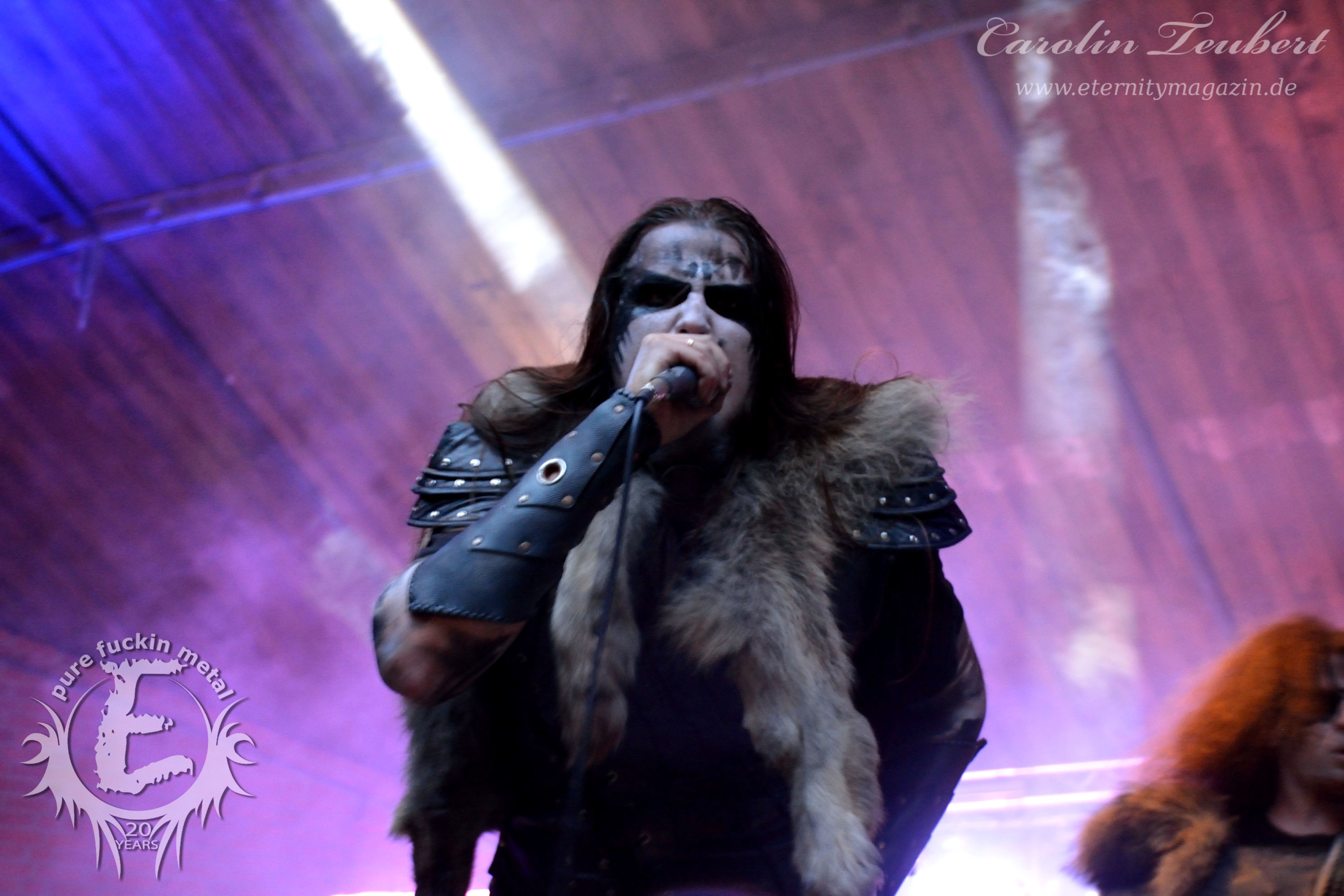 Der Frontmann bleibt gleich auf der Bühne, denn bei Surturs Lohe übernimmt er die Gitarre. Und die Band ist ja bekannt dafür, die Geister zu scheiden. Entweder man mag sie, oder man hasst sie, oder es ist einfach nur eine Paganband für jemanden und das ist auch diesmal nicht anders. Gestartet wird mit dem Song „Der Kaiser im Berg“ vom aktuellen Album gefolgt von „Lohe Surt“. Bis hier hin könnte es auch ein gewöhnliches Pagan-Metal-Konzert sein, doch dann kommt der weibliche Gesang hinzu und der ist doch sehr hoch und zu schrill für manchen im Publikum. Die Band gibt bis zum Schluss ihr Bestes und rundet das Konzert mit „To Walhall We’ll Ride“ ab.