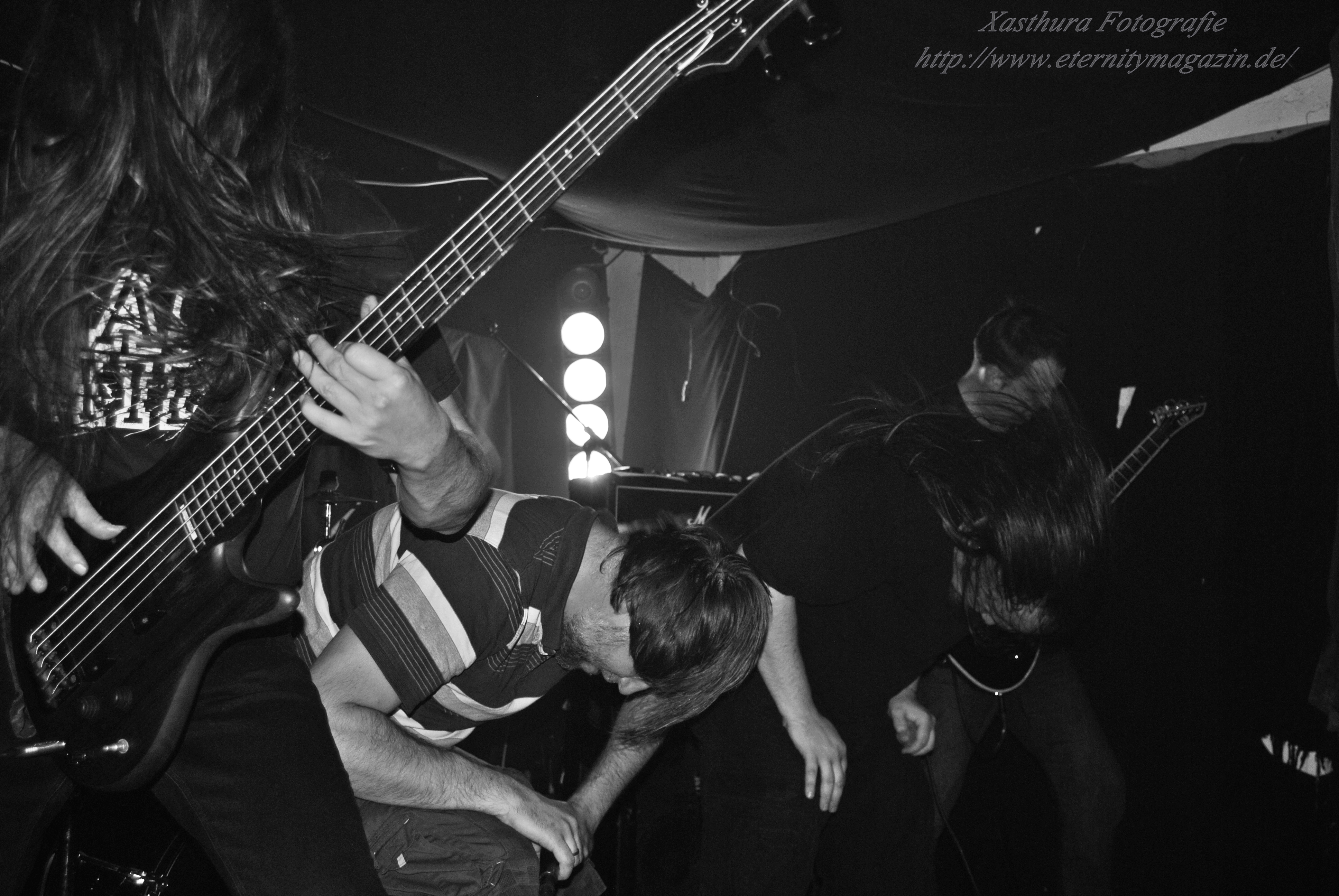 DSC_1289Weiter ging es dann mit der aus Schwerin stammenden Band Aorta. Diese wurde gegründet im Jahre 2002. Die Thematik der Lyrik reicht von paranoid bis schizophren. Die Musikrichtung der Band ist progressiver Deathcore. Bei der Stimmung dieser Band gab es auch nichts aus zusetzen. Das einzige, das mich etwas verwundert hatte war, dass der Sänger barfuß war.
