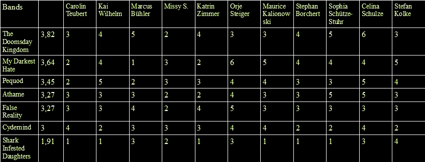 Im weiteren Verlauf könnt ihr wie immer einzelne Kommentare des jeweiligen Redakteurs lesen und per Klick auf Bandcamp- oder Facebookseiten der Bands gelangen. Viel Spaß dabei!